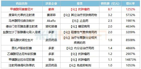 從銷售額增速來看,進口新藥同樣是醫(yī)保的獲益者,盡管目前的銷售規(guī)模不算太大,但成長空間巨大。而從亞類情況來看,新進醫(yī)保的進口新藥涉及的領域更加廣泛,讓更多不同疾病的患者都能用上進口好藥,在增強用藥可及性的同時也充分考慮到了公平性等問題。