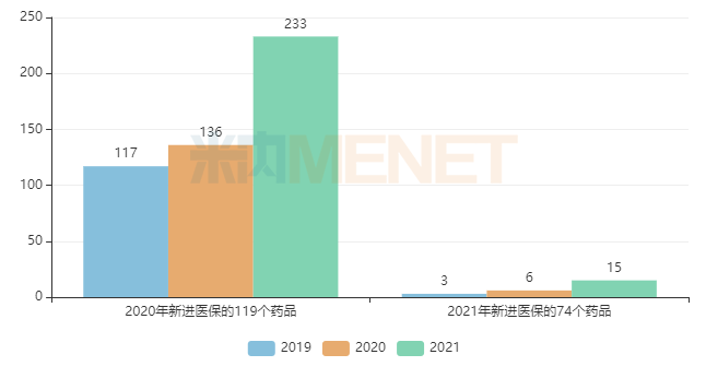 2020版國家醫(yī)保目錄有23個藥品直接調(diào)入、96個藥品談判調(diào)入,這119個藥品2019年在中國公立醫(yī)療機構(gòu)終端的合計銷售規(guī)模在117億元左右,2020年微漲至136億元,規(guī)模增速在16%,2021年(3月1日起執(zhí)行)全年合計銷售規(guī)模超過233億元,增長97億元,增速為71%,醫(yī)?!白o航”助力銷售上漲的效果顯著。