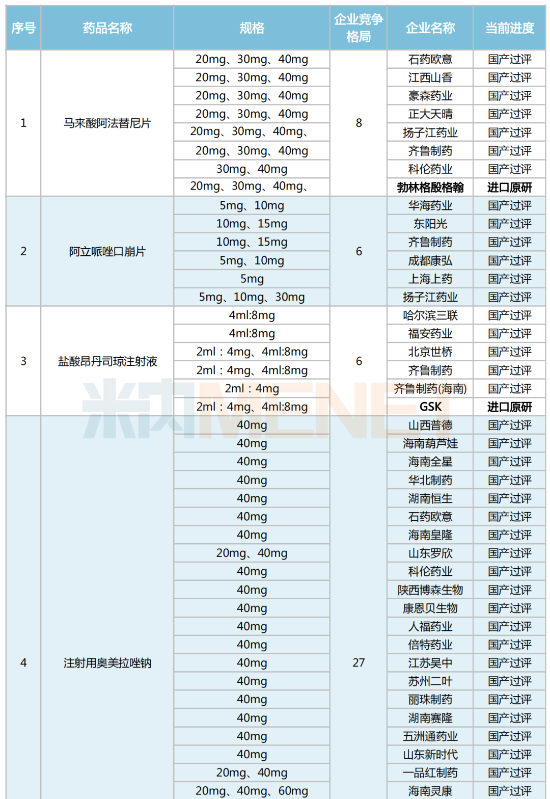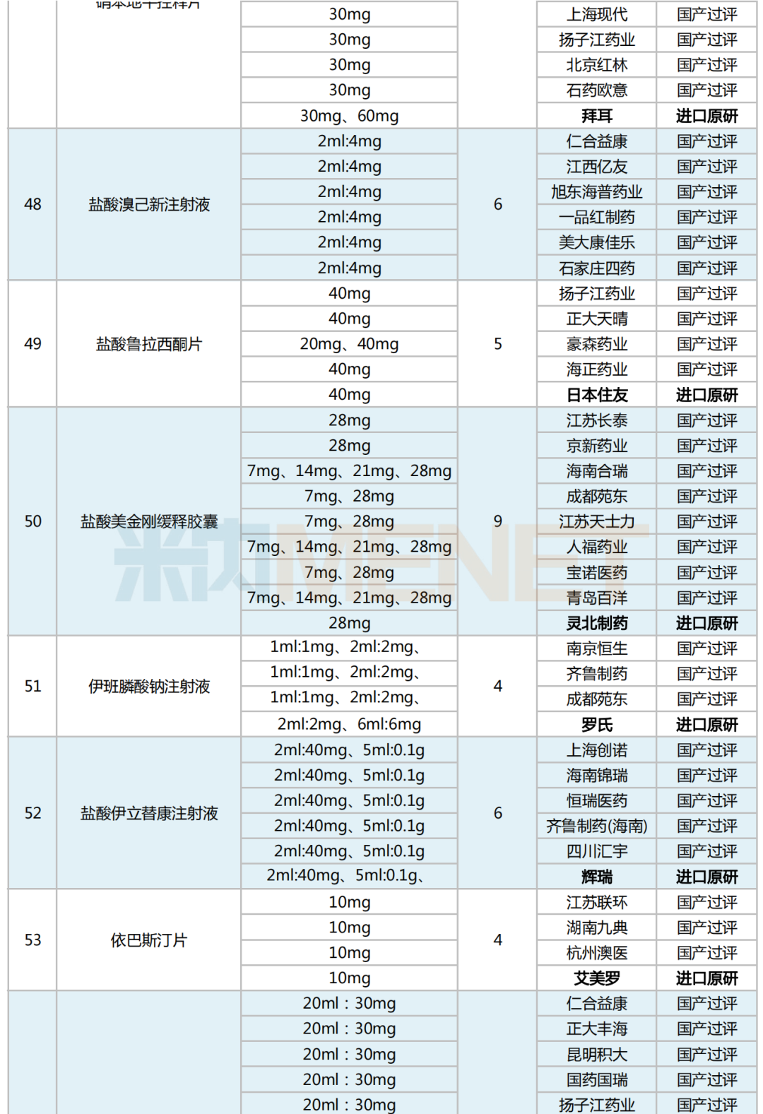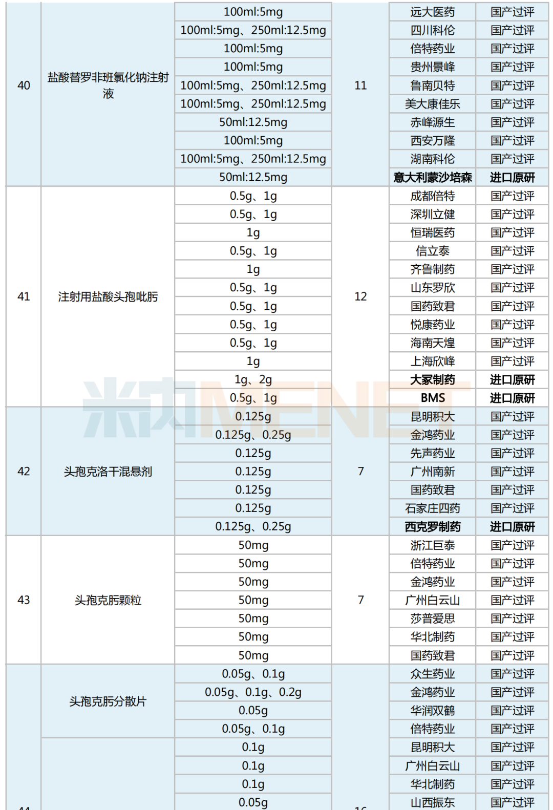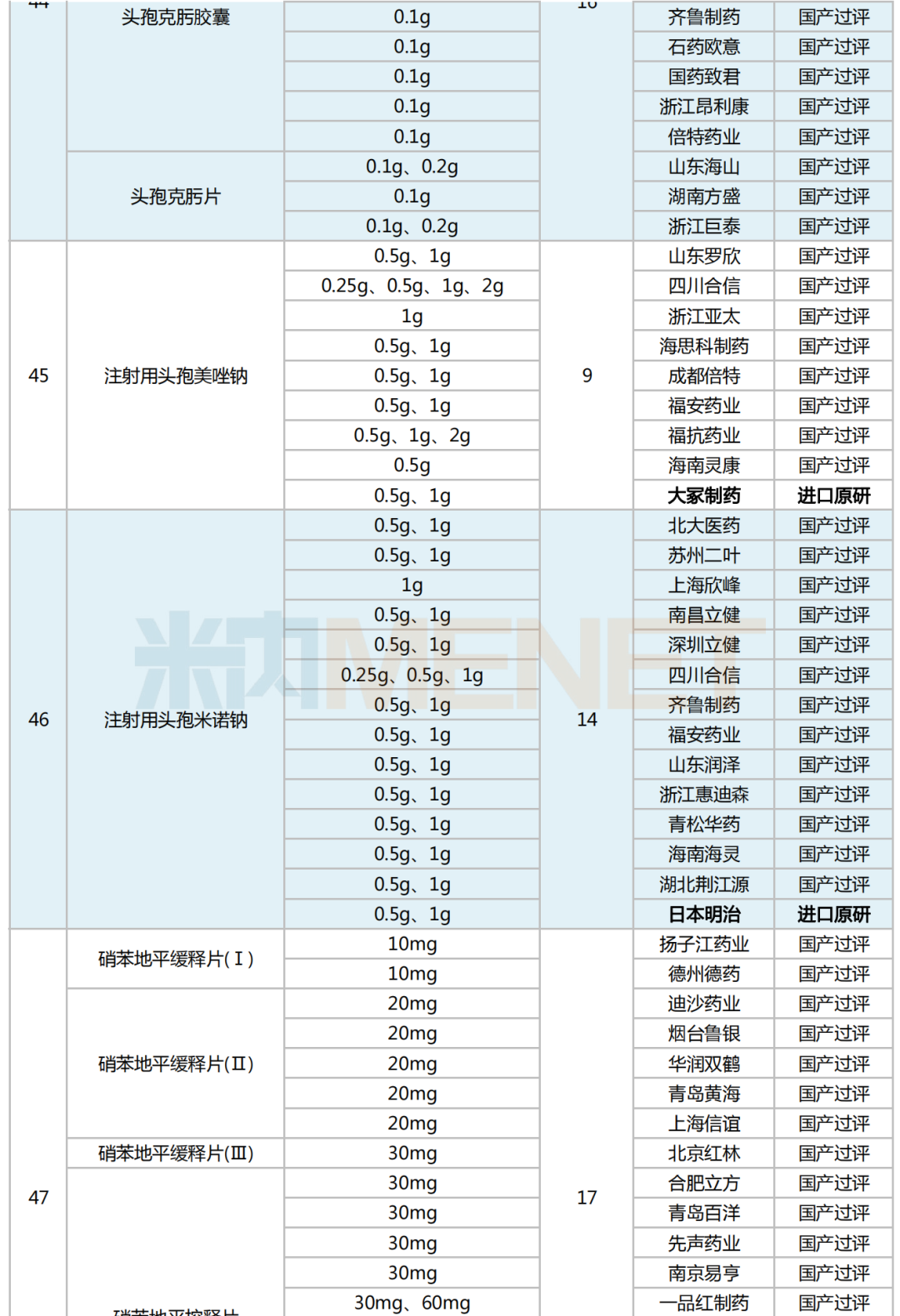 另外,4個(gè)品種競(jìng)爭(zhēng)企業(yè)數(shù)也超16家,分別是:院內(nèi)降壓藥Top1——硝苯地平緩控釋制劑,米內(nèi)網(wǎng)數(shù)據(jù)顯示,硝苯地平緩控釋制劑在2021年中國(guó)公立醫(yī)療機(jī)構(gòu)終端銷(xiāo)售額超過(guò)80億元;一線抗乙肝病藥——丙酚替諾福韋口服常釋劑型,據(jù)吉利德年報(bào)披露,2021年該藥全球銷(xiāo)售額超過(guò)8億美元;臨床常用抗菌藥——克林霉素注射劑,本品具有抗菌譜廣、副作用較小、抗菌活性強(qiáng)等療效優(yōu)勢(shì),臨床需求巨大,2021年在中國(guó)公立醫(yī)療機(jī)構(gòu)銷(xiāo)售額超過(guò)10億元;經(jīng)典頭孢類(lèi)抗生素——頭孢克肟口服常釋劑型,2021年在中國(guó)公立醫(yī)療機(jī)構(gòu)終端銷(xiāo)售額接近30億元。
